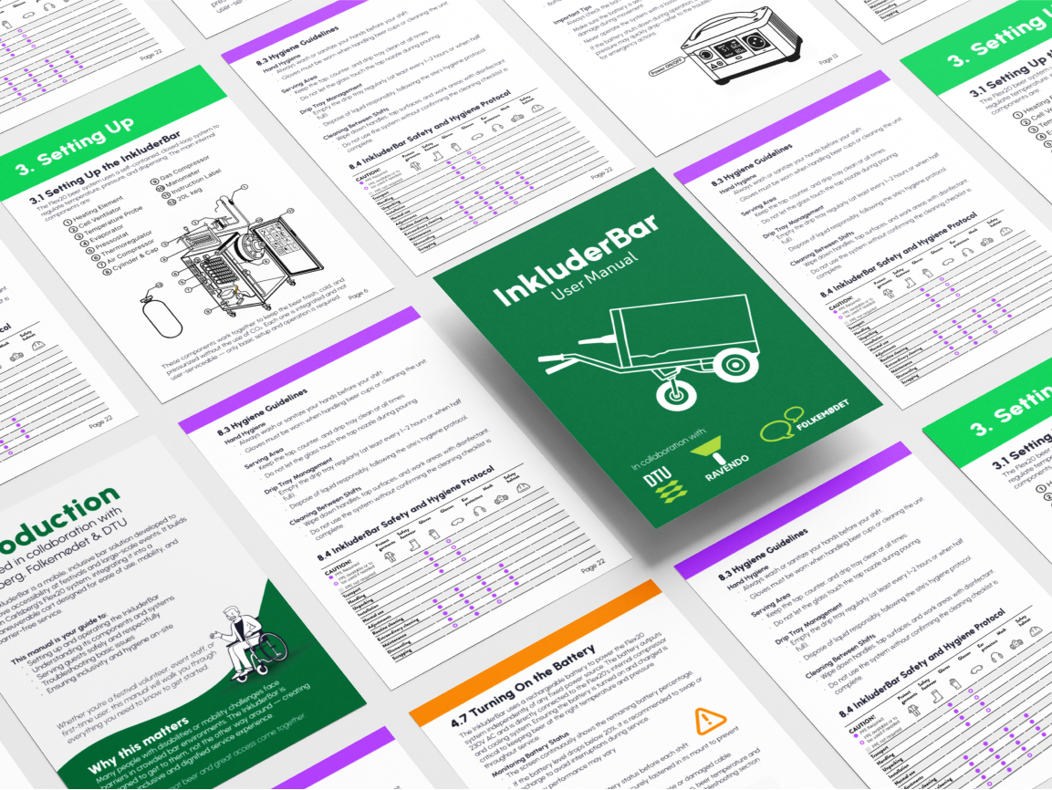 This project was developed in close partnership with Carlsberg and Ravendo. Carlsberg contributed access to their Flex20 draft system, detailed engineering documentation, and valuable input from their technical team, ensuring the final concept aligned with their existing infrastructure and requirements. Ravendo supported the development and manufacturing of the physical platform, offering hands-on expertise in ergonomic design, material choices, and production methods. Their involvement made it possible to deliver a functional, testable prototype. The collaboration brought together two strong industry players, resulting in a solution grounded in real-world constraints and ready for on-site testing.