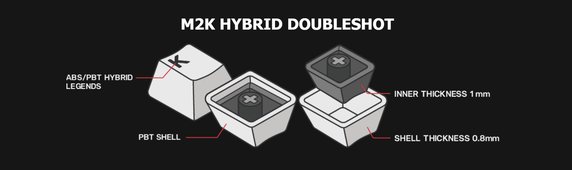 M2K HYBRID is a 24 variant keycap collection from MouseMods that offers versatility, affordability, and style for your keyboard. No matter what type of mechanical keyboard you have or what your desk setup looks like, M2K HYBRID has a colorway to match. And with fair pricing and quality control, you can have a set of keycaps that not only looks great but also lasts.